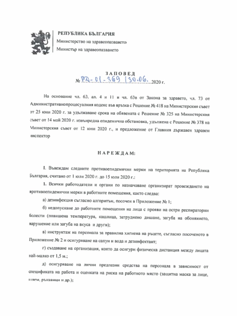 Zapoved Na Zdravniya Ministr Za Vlizane V Blgariya